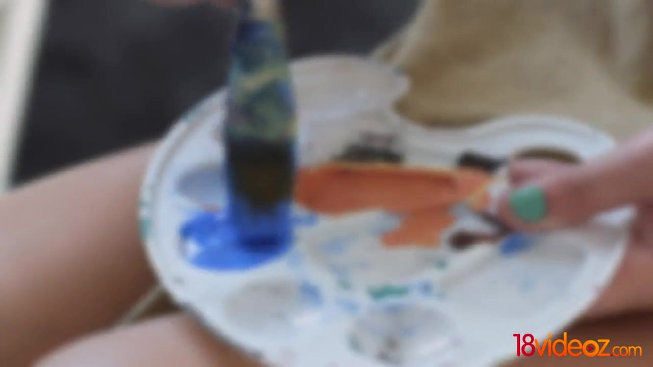 Beautiful painter girl trying anal