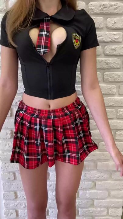 Amazing naked tits and schoolgirl costume