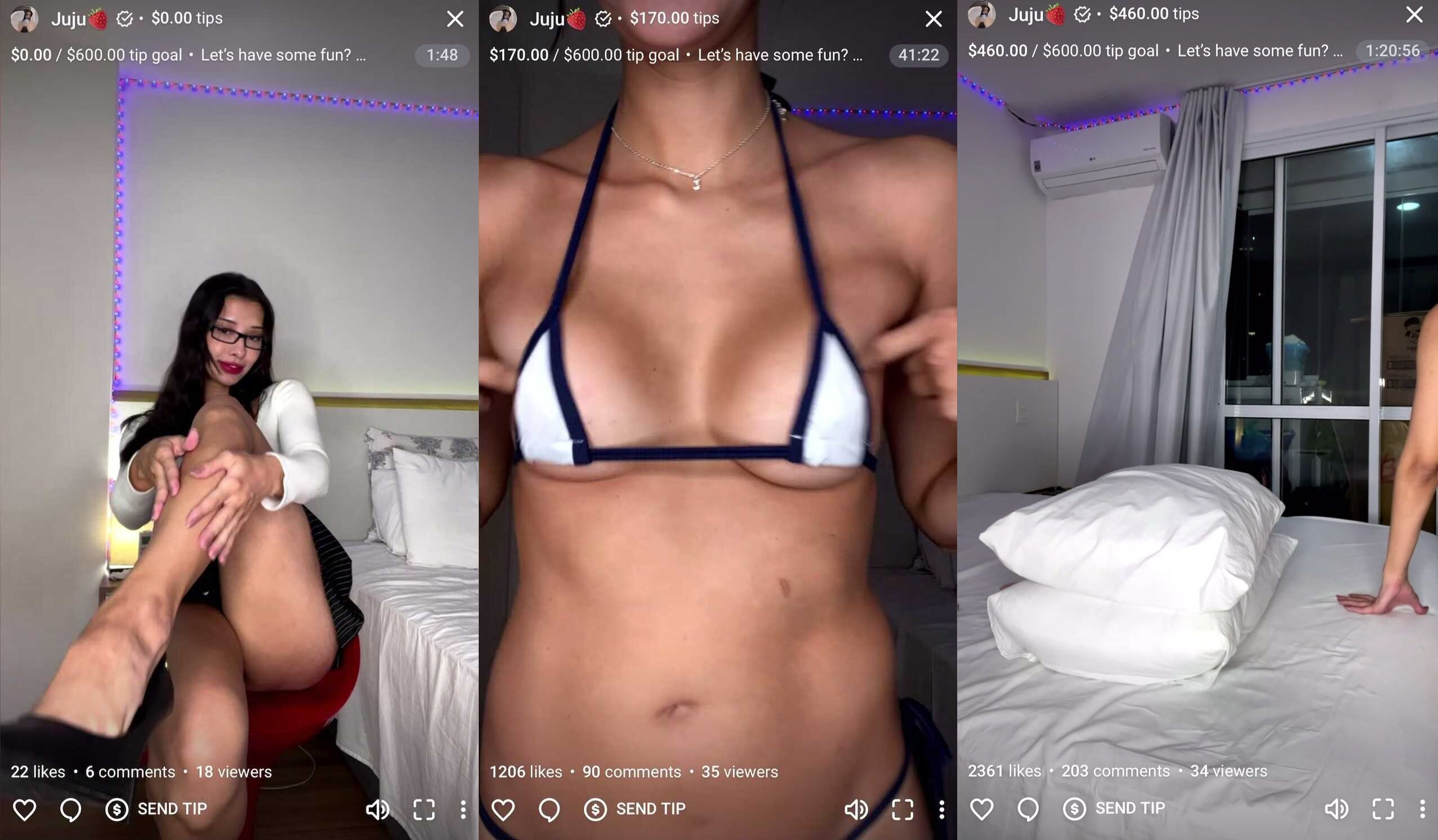 Juju brings the heat in this live stream video as she strips down to her bikini and teases with her perfect boobs.