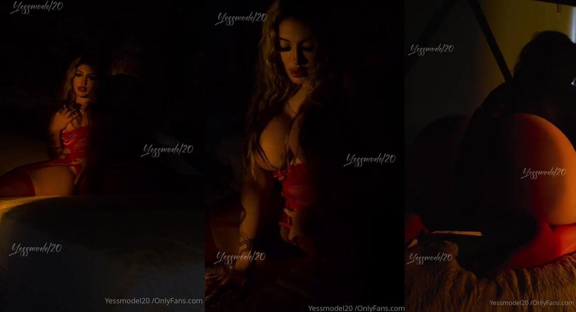 Yessmodel20 brings the heat in this exclusive OnlyFans video, teasing in red lingerie and showing off her stunning curves in a dimly lit setting.