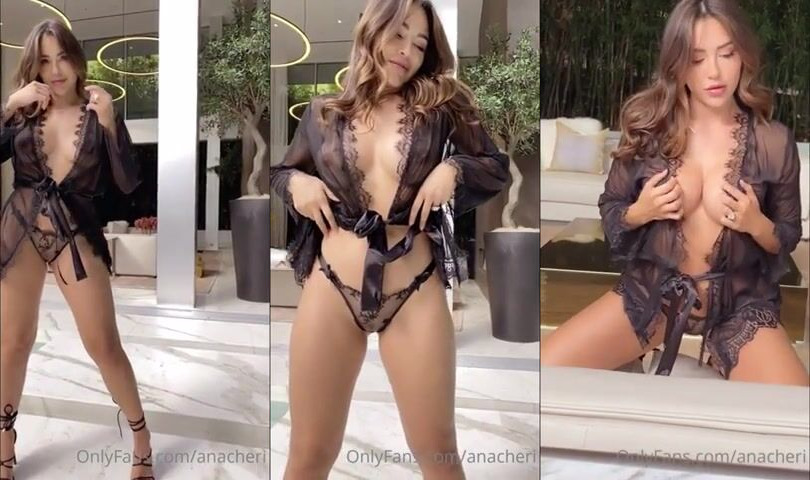 Ana Cheri teases in sexy black lingerie, tits out, in this insane leaked sex video,