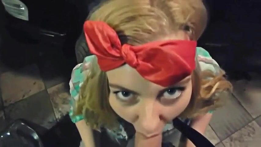 Outdoor blowjob and cum swallowing with my girlfriend in auto repair shop