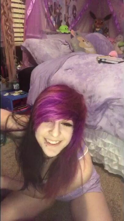 Colored Hair Girl Reveal Her Pussy In Her Stream